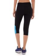 • Black capris with teal accents.