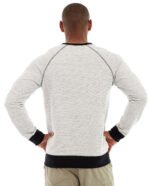 • Cream crewneck sweatshirt with black accents.