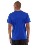 • Royal polyester tee with black accents.